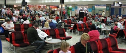 Aged flight attendants huddle together and wait patiently to board the flight while checking out passengers they'll need to serve. They survey the crowd and privately bet on who will be annoying once boarded; and, who won't accept the beverage service. Pilots in their uniforms and impressive looking hats straighten their backs and walk tall among the crowd hoping to impress the waiting passengers with their importance.